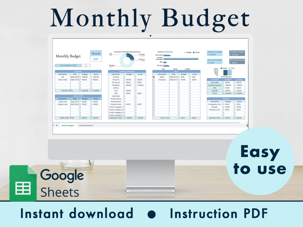 Monthly Budget Spreadsheet Google Sheets Template (Blue)